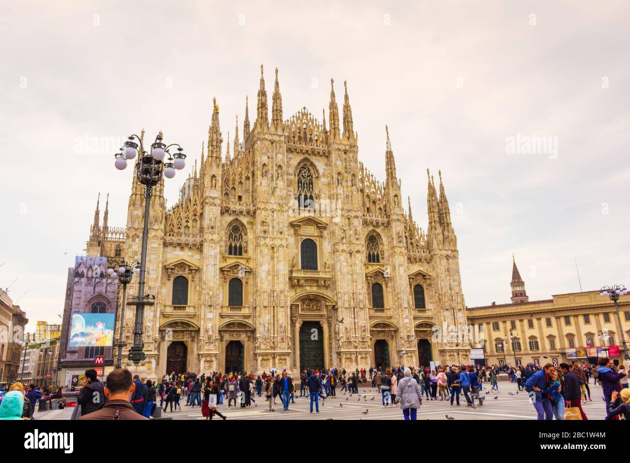 Milan Activities . Crowded Piazza Del Duomo With The Cathedral And Some Of The Moast Prestigious Commercial Activities Milan Lombardy Italy Stock Photo Alamy